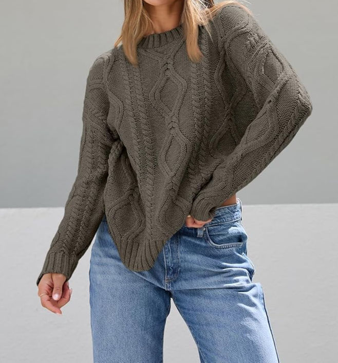The fall classic. Cozy cables add texture and warmth, styled best with slim trousers or jeans.