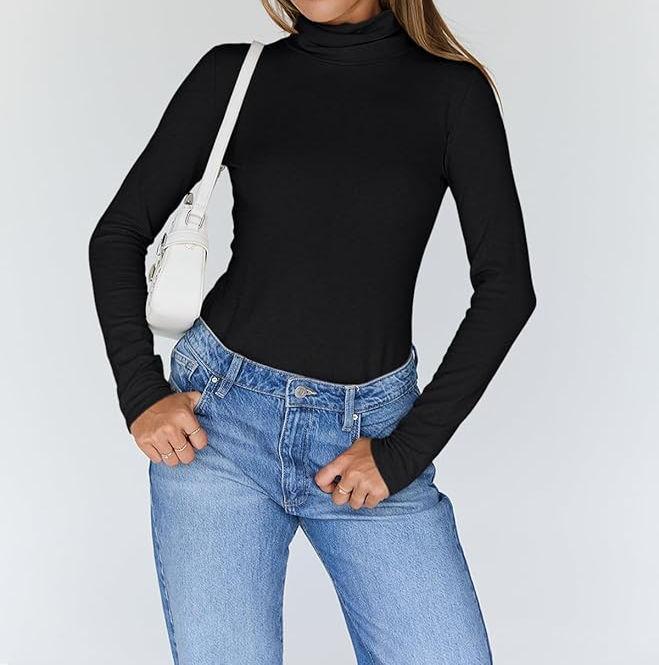 Minimal, sleek, and endlessly layerable. A fitted turtleneck looks sharp under blazers or chunky knits.